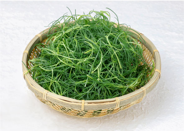 ミネラル、カロテン、ビタミンC などの栄養素を豊富に含み、非常に栄養価の高い野菜です。シャキッとした歯ざわりや、味にくせがないため、おひたしや和え物にしてお召し上がり下さい。
